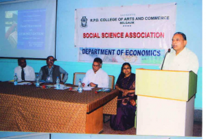 A brief report of the activity : Dept. of Economics in association with Social Science Association of the college organised a panel discussion on a very timely, relevant and burning topic “Demonetisation “ on 11th of January 2017. Dr. Anil B. Kalkundrikar, Principal (Rtd.) Gogte college of Commerce, and former Director, IMER, Belagavi was invited as panellist to put his view forward regarding the theoretical aspects of demonetisation. The other panellists included Shri. I.M. Ramesh retired Regional Manager of SBI to put forth a banker’s view point, where as principal Anand Mense of GSS college, Belagavi and well known trade union leader and social worker as to speak on a common man’s perspective of demonetisation. Prof. S.S. Shinde, head of the dept. of commerce, RPD College, anchored and moderated the panel discussion. A very thought provoking enlightening discussion was followed by a question answer and interactive session.