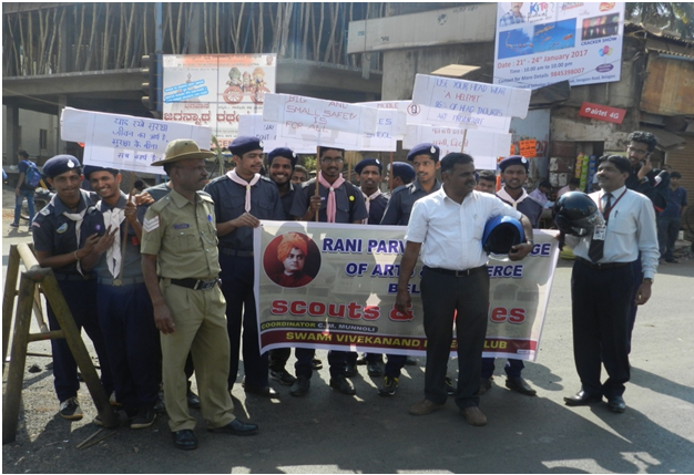 A Brief Report of the activity: RPD College Bharath Scout & Guide cadets Rovers Scouts and Guides On 10th February 2017 the rover unit conducted a rally on the Helmet awareness to the citizens of Belgaum.
