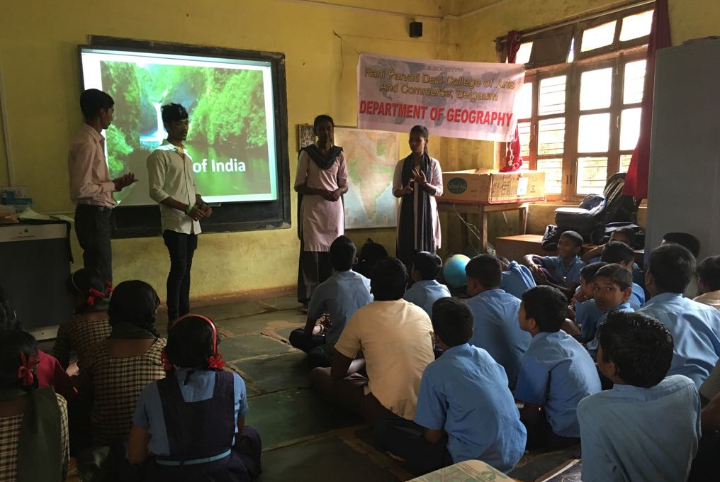 As a part of extension service the BA V semester geography students were asked to teach on the topic ‘Rivers of India and their importance’ to the students of std. VIII and IX in Government High School No. 17 Shahapur, Belagavi. This activity has brought awareness about the importance of rivers amongst the students and also benefited our students immensely by building the confidence and creating the interest towards the geography subject.