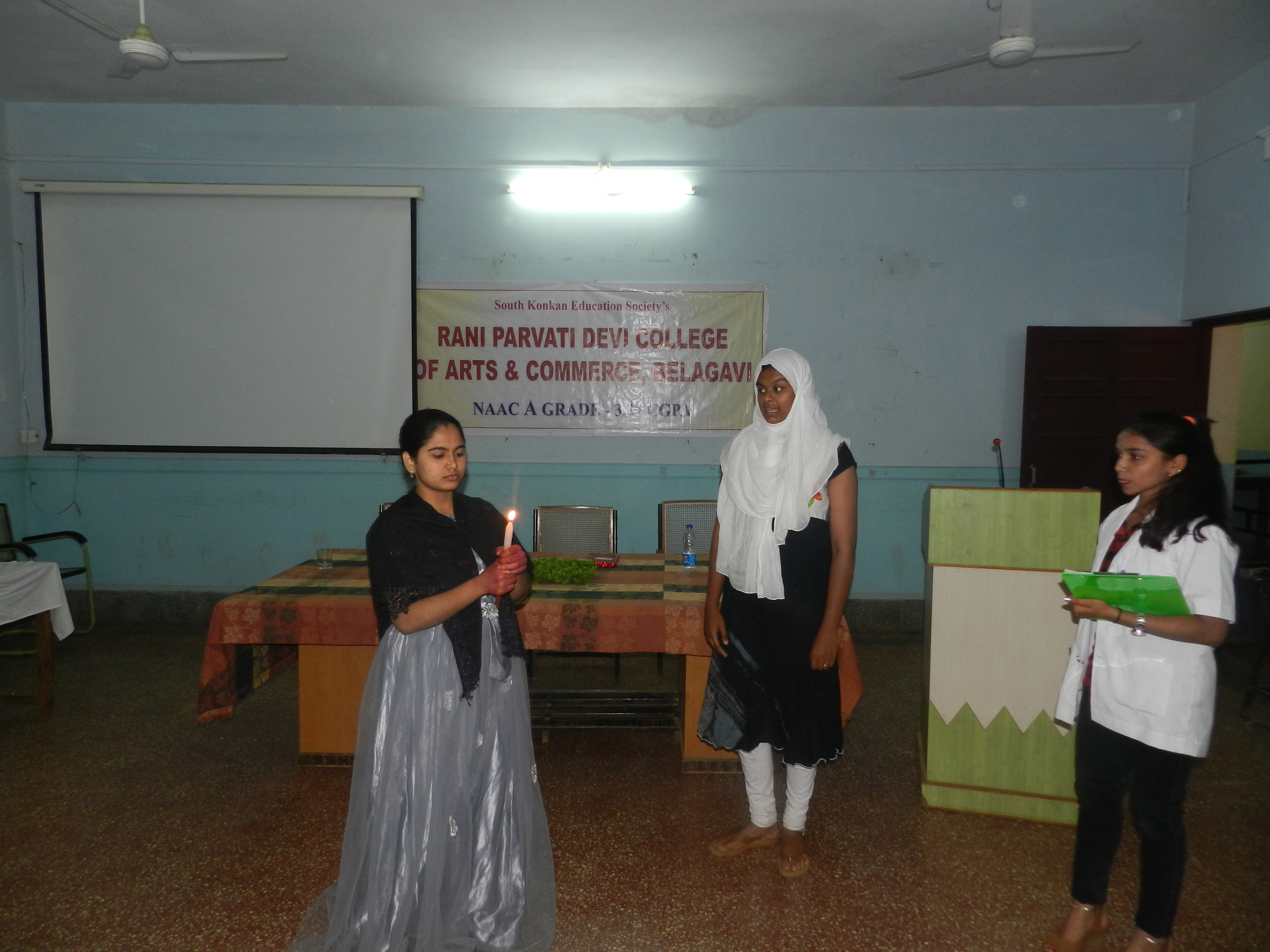 The Department of English had conducted an English Academic function on “Approaches to literature” for BA optional students on 10th of March 2018. The function was arranged in Shri.Seventilal Shah Sabhagraha(society hall) between 10.00 am and 2.00pm. Mr.Manjunath Hiremath from Dharwad was the resource person on the day.students of B A II performed a skit on sleep walking scene from “Macbeth”. Short story writing competition prizes were distributed on the same day.