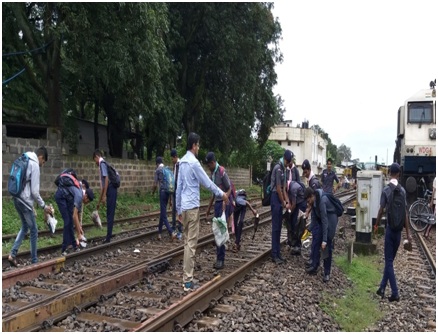 Rovers Scouts and Guides unit of RPD College carried out the “Swachh Bharat Abhiyan” programme on 12/08/2018. The Rovers participated in the Swachh Bharat Abhiyan near Belagavi Railway Station with the intention of keeping “Clean India Beautiful India” by cleaning the railway tracks and its surroundings.