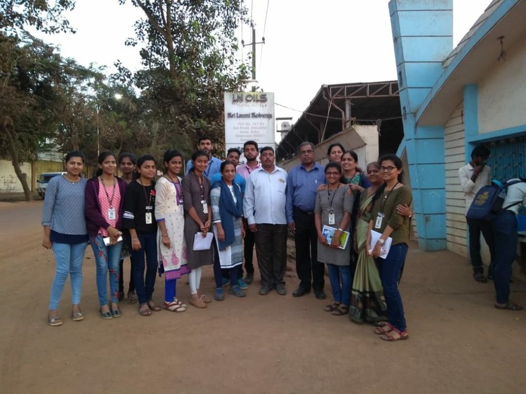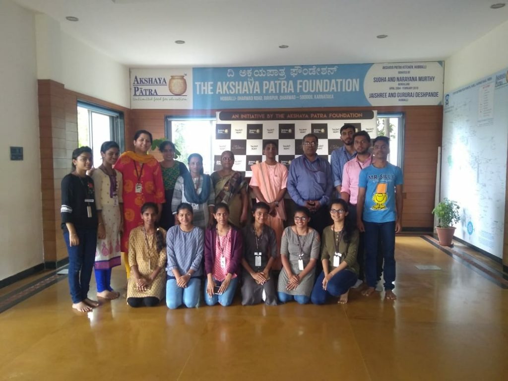 A Batch of 12 students of B.Com III along with the 5 faculty members visited Greenark Industry at Hubli on 11th September,2018, manufacturers of eco friendly plates made out of the arecanut flower covering. The students were exposed to the process of manufacturing the different form of plates and containers which are used in serving food. The industry is managed by a women entrepreneur Mrs. Vrushali Deshpande along with her partners Mr. Vinod Kadam and Mr. Amit Kulkarni. The unit has been managed professionally and has employed a large number of women employees. It is a both capital intensive and labour intensive unit. The unit has export orders because of the standards that they have maintained in manufacturing the eco friendly plates. The students were given to understand the whole raw material procurement process and the further plate processing and the costs involved into the same. The students also visited the world’s largest kitchen “ Akshya Patra” Hubli ,under the guidance of shri. Rajesh Patki and Swami Santanudas of ISKCON, to understand the mega production of food for the mid day meals for 800 govt schools and more than 1,50, 000 students. The students also had the privilege of visting the KMF Hubli unit and were able to understand the whole milk procurement and distribution system. The students were shown the various milk products produced at the unit. The students also visited the Laxmi Narayan Solvents, Hubli a unit for extraction of edible oil from cotton seeds owned by Mr. Manuel and his partners. The students learnt the process involved in the oil extraction and also had a great idea of the By-products and the waste product , which after further processing have got a great commercial value. The Unit has an annual turnover of approximately Rs. 300 crores and employs around 200 regular and about 300 seasonal workers in the unit.