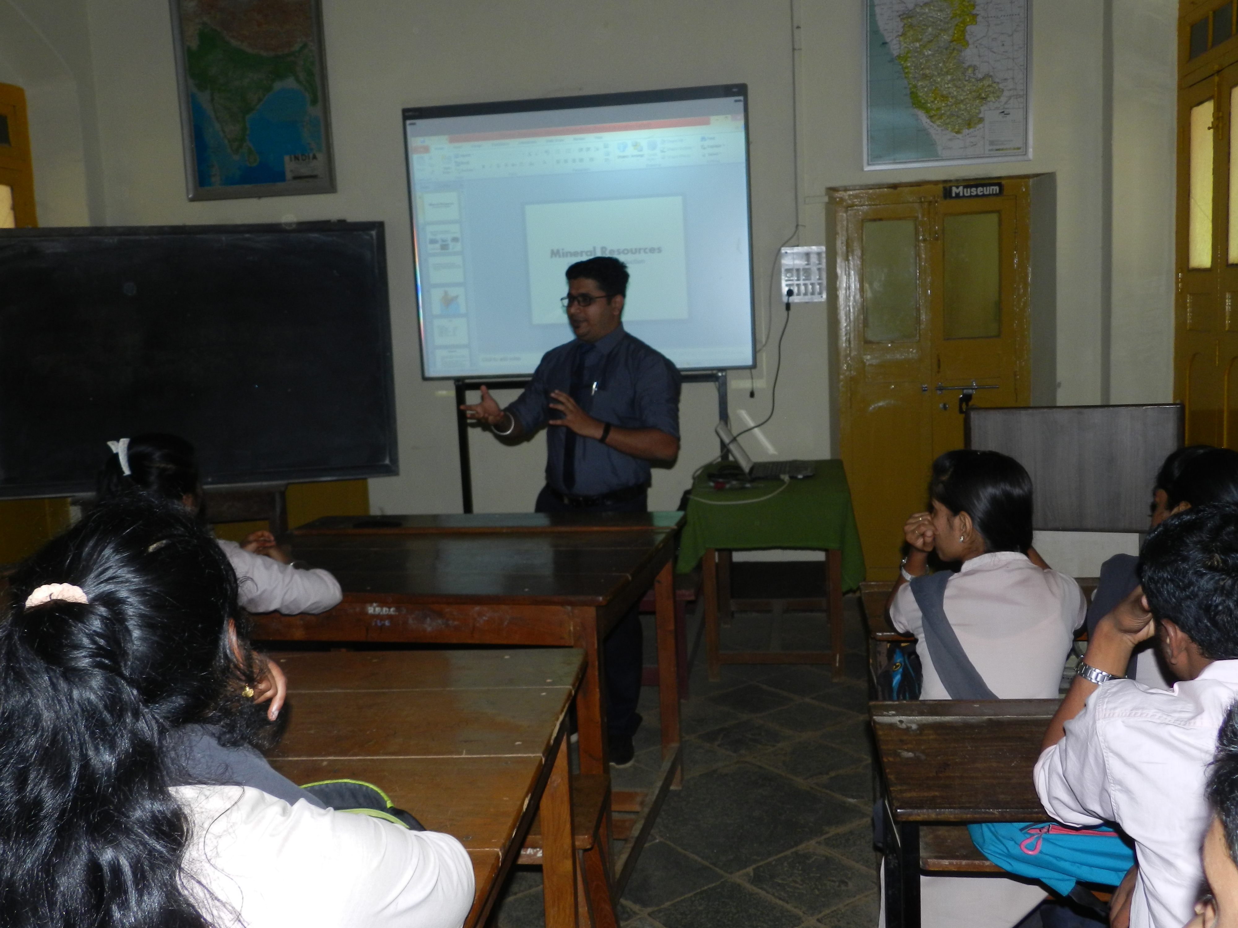 The Department of Geography organized a guest lecture for the students of B.A. third semester on 20th September, 2018. The guest speaker was Shri. Yogesh Kutre Lecturer, Dept. of Geology, GSSc college Belagavi who spoke on the topic ‘Mineral Resources of India’ and highlighted about the important mineral resources and their reserve, production and consumption capacity as well as their dependency ratio I India. He also made an attempt to show, how mineral exploration or extraction and processing can have a large environmental impact. He also interlinked the existing population pressure on resources and method to conserve the resources for sustainable development.