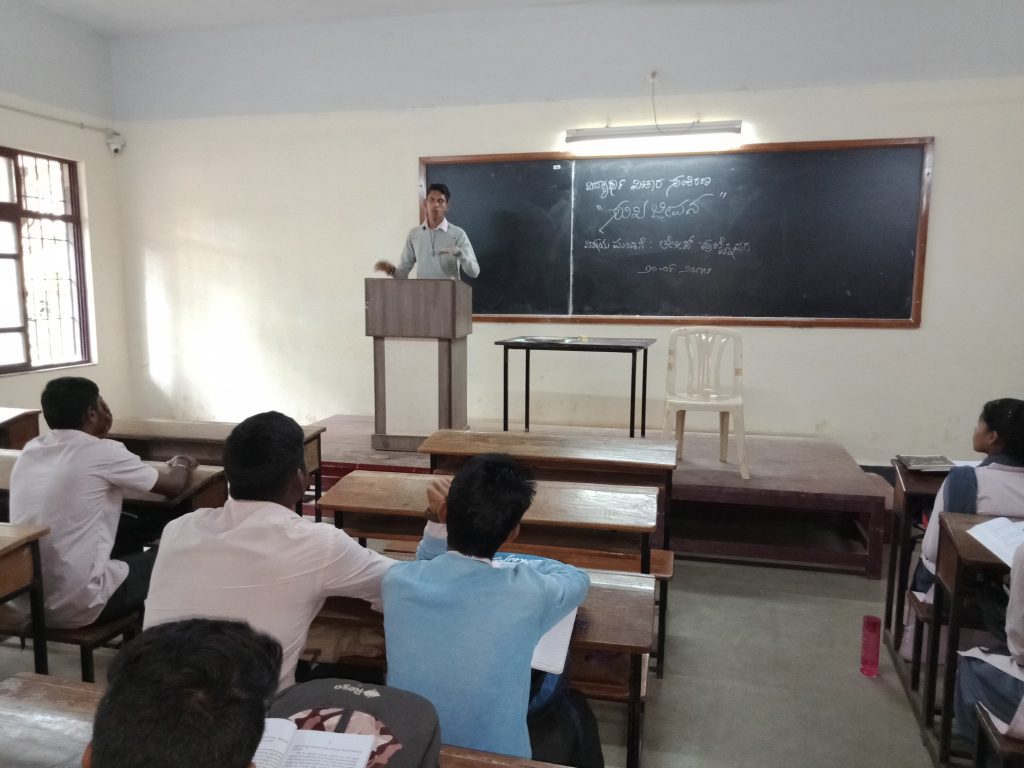 A Classroom Seminar was conducted for students of BA-I on 25th September 2018. Mr. Tejas Punnennavar, presented a paper on “Sukha-jeevan” a text-based poem written by Madhurachanna.