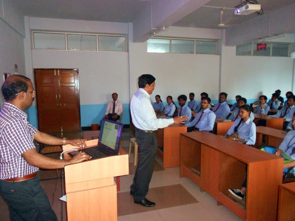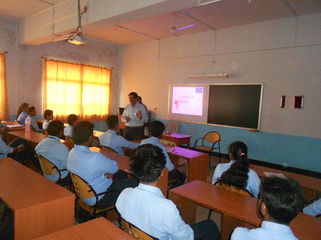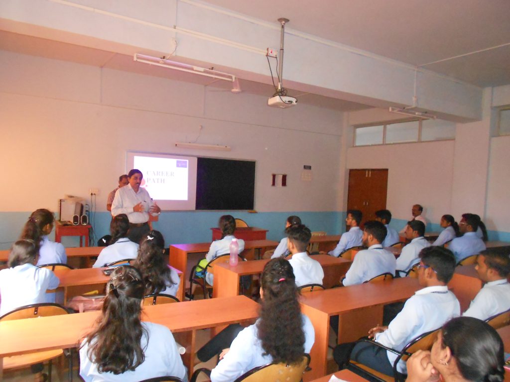 A talk on career building and goal setting was organised on 29.09.2018. Shri Raveendra Mahabalashetti CEO Technofincorp Belagavi was the resource person. Shri Muralidhar Tumbal also participated in the discussion. Students were told about the planning and setting of goal for advancement of career in a systematic way. It was emphasized that a dream about career can be converted into reality if proper steps are taken during studying degree itself. Students were very vocal and interactive throughout the session. All their apprehensions and doubts were cleared. Students expressed happiness about the motivational talk arranged by the college.
