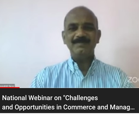 The department of Commerce conducted an online National Webinar on 19-06-2021 on “ Challenges and Opportunities in Commerce and Management” . Considering the changing environment in the post Covid situation and the challenges faced by different sectors of the economy, where in the pandemic had brought in negative growth in the economy and the great challenges before the business world in not only surviving in such environment but also the management of the businesses. The the department of commerce thought it fit to hold the webinar on the above topic. Dr. Annasaheb M.Gurav, Professor, Department of commerce and Management, Shivaji University, Kolhapur, Maharasthra was the resource person for the webinar. The webinar had a registration of 555 and has 2744 views on you tube. https://youtu.be/ZlihTeLeEr8