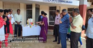 A brief report of the activity : The Maharshi Valmiki Jayanti celebrated with zeal in RPD College on 20-10-2021. The Principal Dr. S. A. Naik garland the photo. Teaching, Non – Teaching staff members and Students are present for the programme. IQAC, Co-Ordinator Dr. A. M. Patil, welcome and give the vote of thanks.