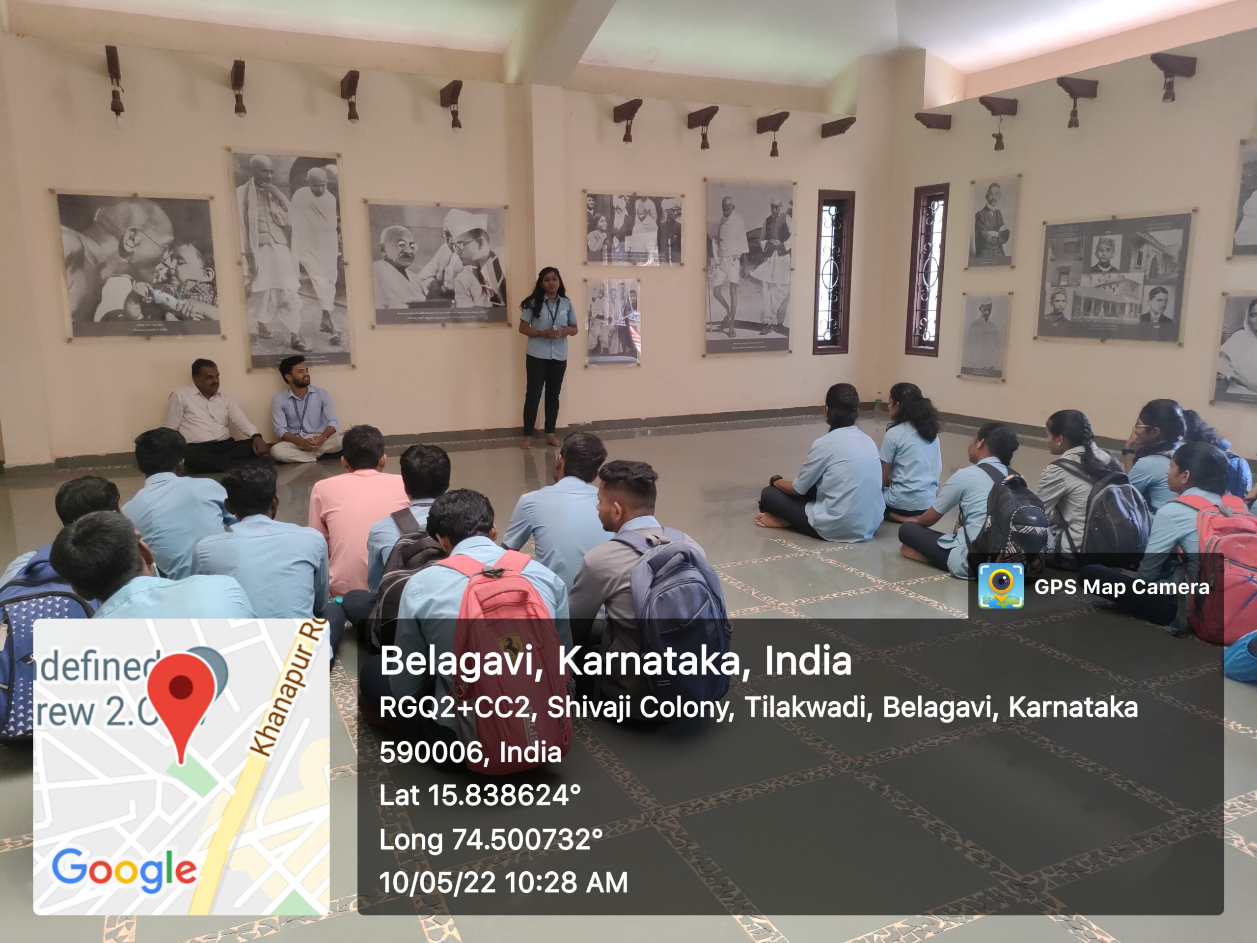 A Brief Report of the activity: As a part of INNOVATIVE METHODS OF TEACHING and celebration of “Azadi Ka Amrit Mahotsav”, Department of History had taken final year students to VEERASOUDHA, Congress Well, Belagavi. Students went through variopus photographs related to Indian National Movement and experienced the innovative methods of learning. This place is famous for its historical importance. The INDIAN NATIONAL CONGRESS held its 39th session at Belagavi on the 26th & 27th Dec. 1924. This session is also called as ‘The Vijayanagra Congress Session’, which is the only Congress Session in which Gandhiji was made the President.