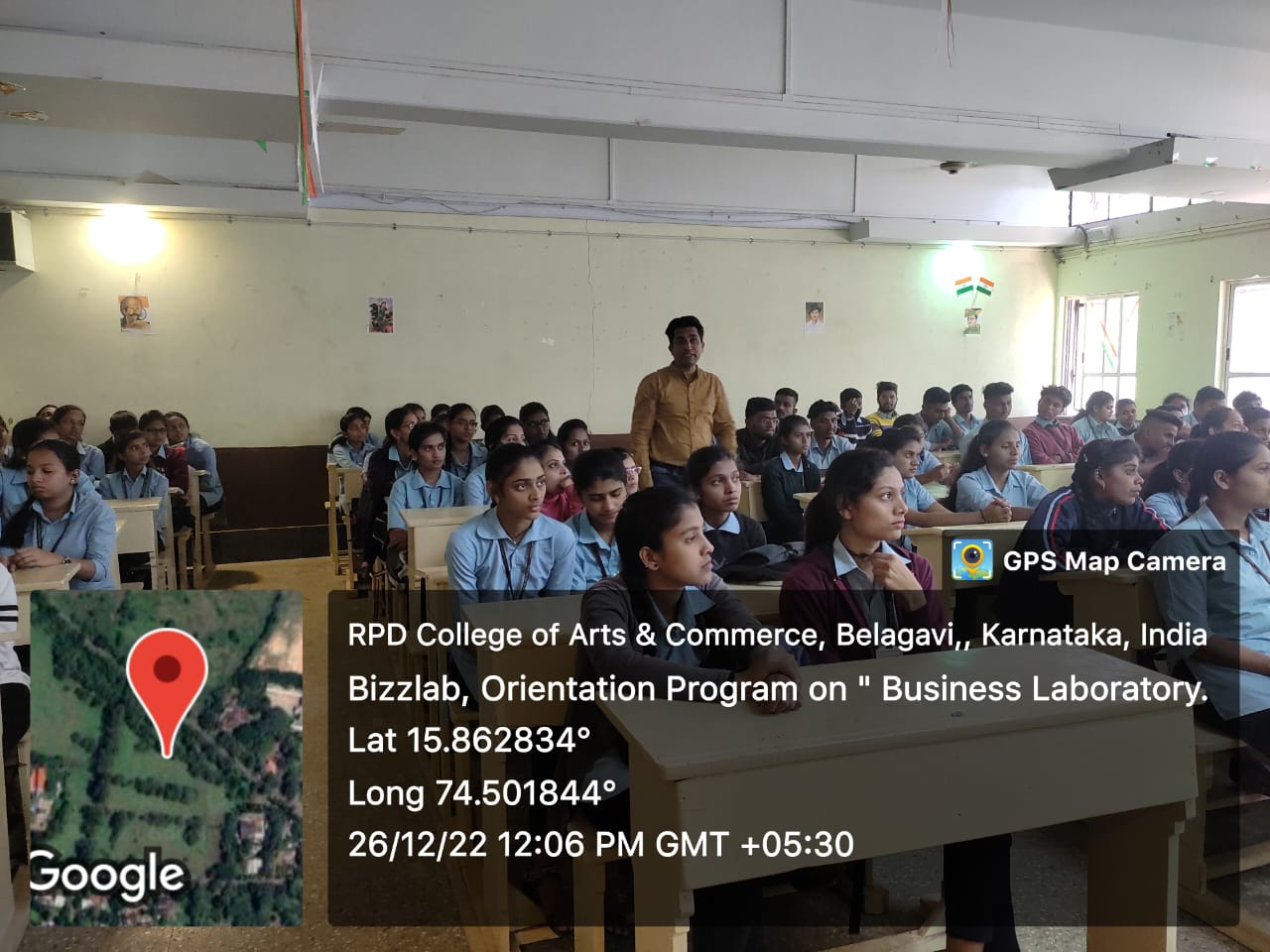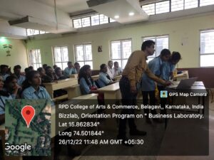 Mr. Umesh Chougule MD, Bizzlab, Bangalore addressed the final year B.Com. students and sensitized the importance of Business laboratory an on-line platform for real time industry experience. He explained and provided hands on experience of three modules on Accounting & Book closing, Inventory Management & Valuation and GST work & Return filing out of the 20 working modules developed for training students to make them job ready.